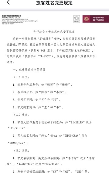 图说:吉祥航空旅客姓名变更规定采访对象供图