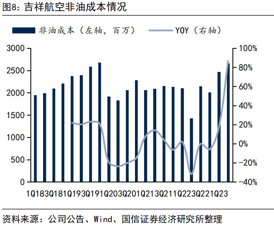 上半年成本表现平稳,扣汇业绩逐季度改善。上半年公司营业成本80.82亿元,同比增长33.9%,其中航油成本29.47亿,同比增长68.7%,非油成本51.35亿元,同比增长19.7%。公司费用水平基本稳定,但由于汇率波动导致二季度汇兑损失达到4.3亿,单季度业绩环比下滑,如扣除汇兑损益,二季度公司扣汇利润达到3.1亿,环比显著提升。