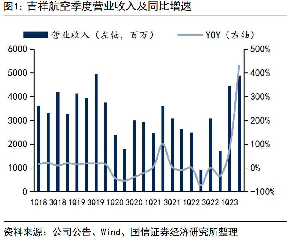 吉祥航空披露2023年中报。2023上半年公司营业收入93.3亿元,同比增长173.6%,实现归母净利润0.62亿元,同比扭亏;二季度公司营业收入48.9亿元,同比增长428.7%,实现归母净利润-1.03亿元。