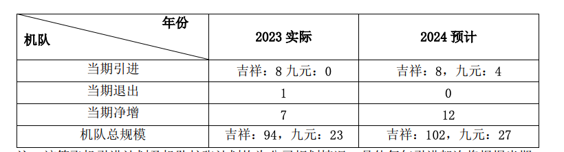 吉祥航空2024年机队规模扩张计划。图/吉祥航空2023年年报截图