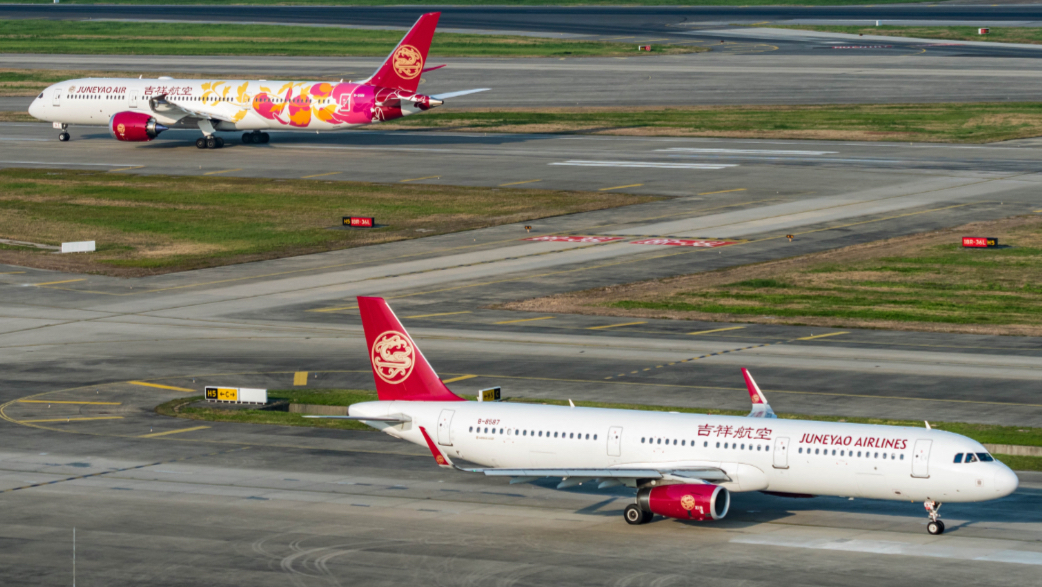 吉祥航空机队则拥有87架A320系列窄体机、7架波音B787系列飞机(截至今年2月末)。截至2024年3月,吉祥航空国际航线分布在北京、南京、上海、郑州等出发机场。