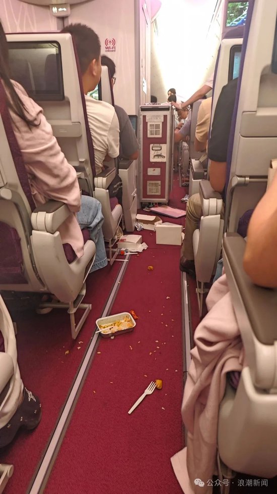 戴先生表示,当时正值发餐时段,大家手里的餐盒、手机等物品纷纷“飞”向空中,有女乘客被洒落的咖喱等餐食弄脏衣物,客舱内瞬间尖叫声四起。