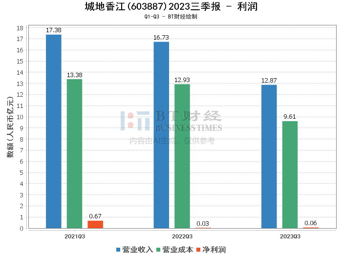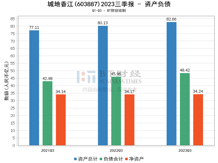 在资产负债方面,城地香江2023年三季报显示,公司总资产达到82.66亿元,相比上年度末的84.69亿元略有下降。负债合计为48.42亿元,较上年度末的50.52亿元有所减少。净资产则小幅增长至34.24亿元,上年度末为34.17亿元。资产负债率从上年度末的59.65%降至58.58%,显示公司财务结构有所优化。