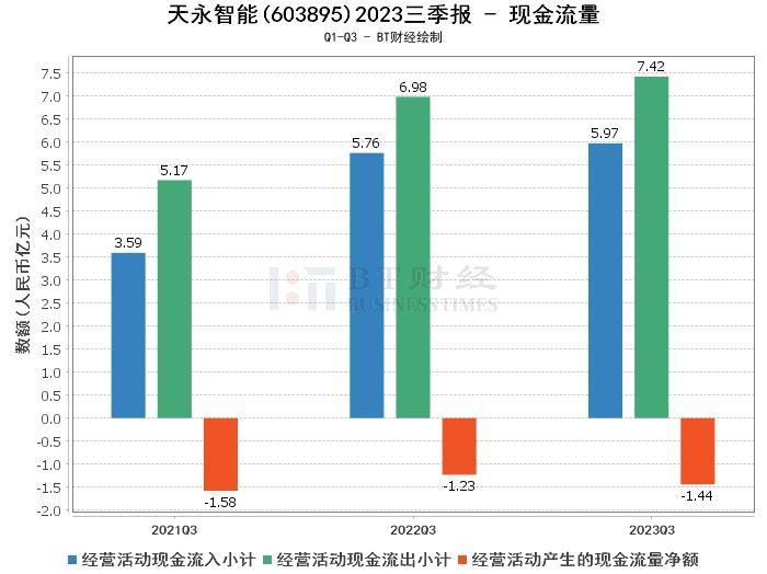 在现金流量方面,年初至本报告期末,经营活动产生的现金流入小计为5.97亿元,相比上年同期的5.76亿元有所增加。经营活动产生的现金流出小计为7.42亿元,相比上年同期的6.98亿元有所增加。经营活动产生的现金流量净额为-1.44亿元。