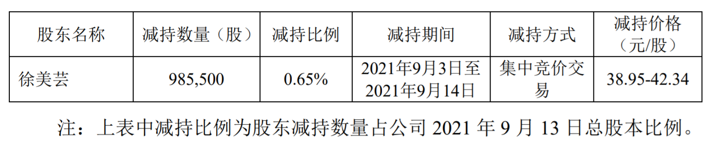 公告显示,2021年9月14日,寿仙谷收到原持股5%以上股东徐美芸的《简式权益变动报告书》,徐美芸通过集中竞价交易方式减持其持有的公司股份985,500股,占公司2021年9月13日总股本的0.65%,本次权益变动后,徐美芸不再是持股5%以上股东。