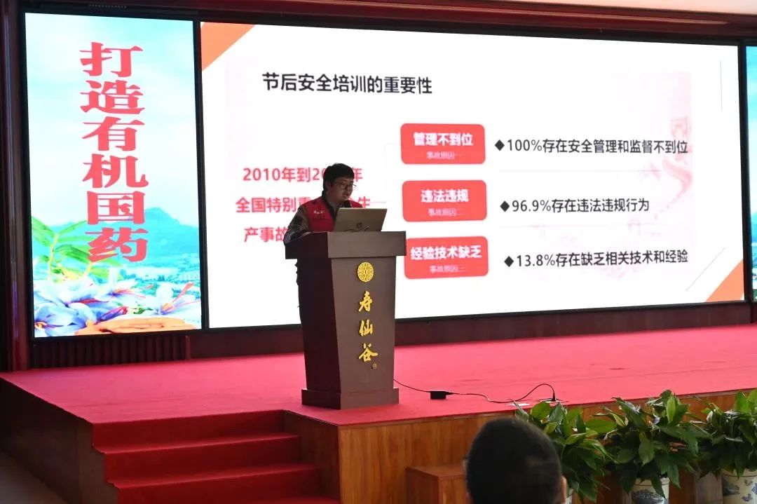 寿仙谷公司为进一步做好复工复产安全管理工作,强化全员安全意识和责任意识,牢固树立“生命至上,安全发展”的理念,坚持问题导向,紧盯关键装置、重点环节,落实安全管理主体责任人,切实做到不落项、不留死角。同时,在第一时间开展“节后复工复产安全教育专题培训”活动,由公司行政综合部主任邹方根主持,专职安全员蒋巧勇主讲。培训从事故案例分析、复工复产期间会存在的危险因素以及安全管理措施等方面进行讲解。