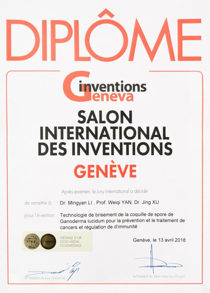 寿仙谷建立灵芝孢子粉去壁技术体系,研制出荣获国家发明专利的新一代去壁灵芝孢子粉系列产品,推动灵芝孢子粉进入全新的“去壁高效应用时代”,并获得了第46届日内瓦国际发明金奖。