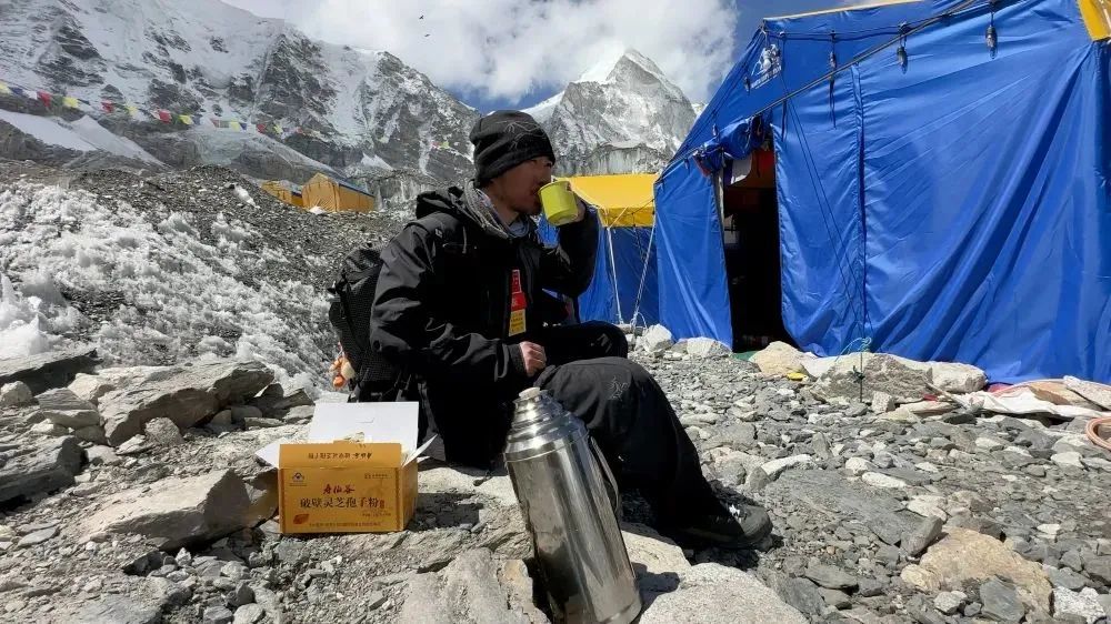 ▲登山队员登顶珠峰的过程中,服用寿仙谷去壁灵芝孢子粉,增强免疫力
