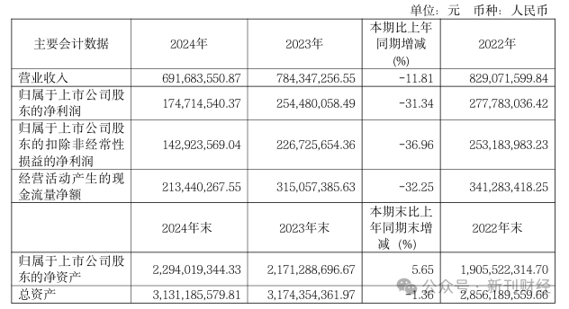 数据显示,寿仙谷2024年业绩呈现全面下滑态势,其中营收6.92亿元,同比缩水11.81%;盈利能力更是大幅走弱,归母净利润1.75亿元,同比锐减超三成;若剔除非经常性收益影响,扣非净利润1.43亿元的降幅更逼近37%,这都反映出公司主营业务面临的严峻挑战。