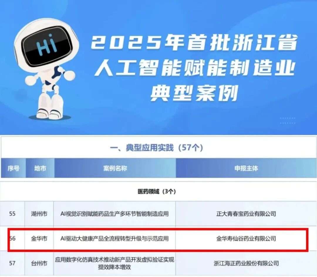 近日,浙江省经信厅发布2025年人工智能赋能制造业典型案例名单,金华寿仙谷药业凭借“AI驱动大健康产品全流程转型升级与示范应用”项目成功入选。寿仙谷通过深度融合人工智能、大数据、工业互联网等新一代信息技术,完成了现代智能工厂的智能化升级,为中医药产业数字化转型提供了可复制的“浙江样本”。