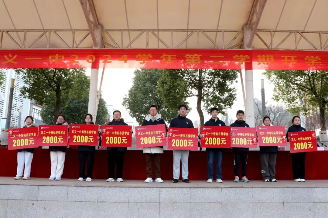 2月21日,第七届“寿仙谷一中奖学金”颁奖仪式在武义县第一中学开学典礼上举行,高一、高二、高三年级共62位同学在上一个学期中表现突出,分别获得一等奖、二等奖、三等奖奖学金,领到丰厚红包。