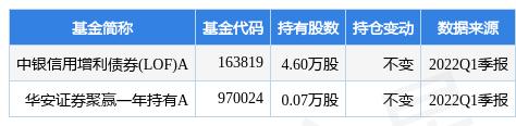 其中持有数量最多的基金为中银信用增利债券(LOF)A,目前规模为31.01亿元,最新净值1.0306(4月27日),较上一交易日上涨0.19%,近一年上涨4.35%。该基金现任基金经理为奚鹏洲周毅。