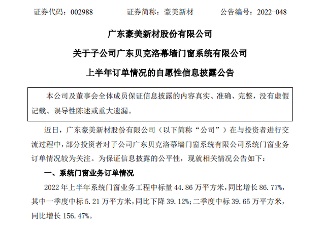 还是以贝洛克系统门窗为例。据了解,该品牌2021年重点加强了地产客户的开拓,进入保利、中海、绿地等地产企业的集采名录。从贝克洛系统门窗2022年上半年的订单情况来看,其系统门窗业务工程中标量为44.86万㎡,同比增长了86.77%。按照这个订单量保守估计,贝洛克系统门窗上半年仅仅是工程渠道就可以实现4~5亿元的销售额。