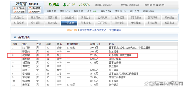 2022年3月,沈汉标、王妙玉夫妇以90亿财富位列胡润全球富豪榜第2532名,相比去年身价又涨了5亿。接下来,运营商财经网试图梳理他们的儿子沈竣宇的过往,其现任好莱客副总经理、董事。