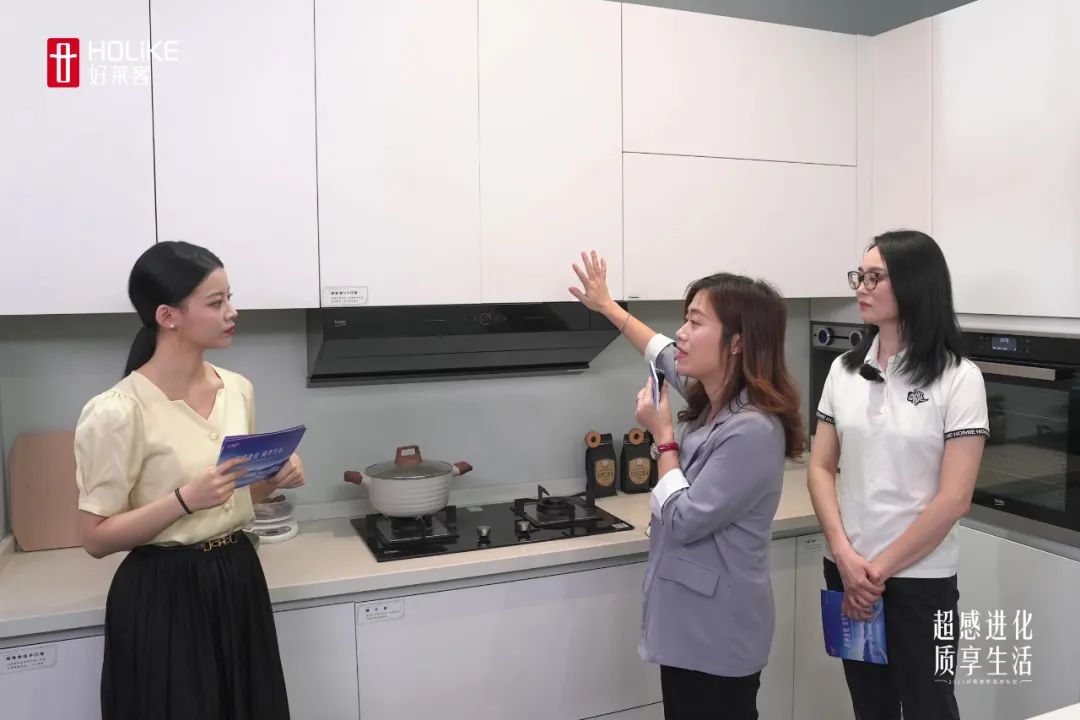 据好莱客首席产品运营官金超强介绍,此次新品实现了多项工艺创新突破:饰面采用准分子工艺打造准分子亲肤板、门墙柜一体化喷粉工艺、45°柜体斜拼工艺、超高吸塑门板工艺、圆弧应用工艺等等。除此之外,潮品模块和高效化橱柜功能模块系统的开发为终端设计师场景应用的适用率做了提升。