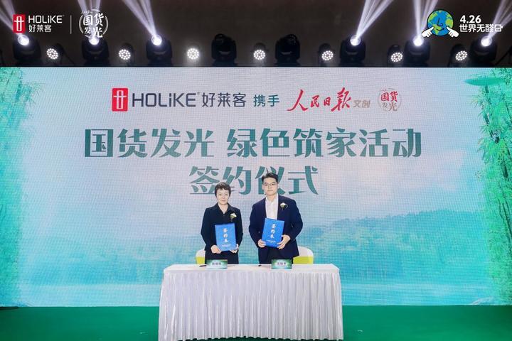 好莱客与人民日报文创在发布会现场更是完成了进一步的战略合作签约,一场理念与实践交融的创新之旅正式启程,双方在未来将充分挖掘并发挥各自领域的优势资源,共同为国民打造更健康、更普惠的绿色家居环境,从而实质性地提升国民的生活品质,使健康美好的生活愿景变得触手可及!