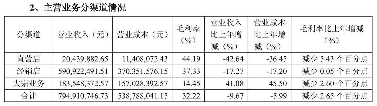 分渠道来看,好莱客直营店营收同比减少42.64%至2043.99万元;经销店营收同比下滑17.27%至5.9亿元;大宗业务营收同比增长41.08%至1.84亿元。