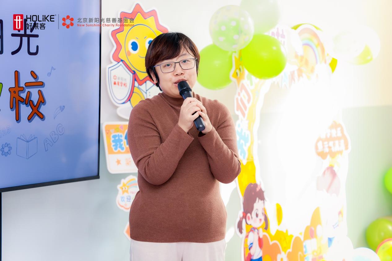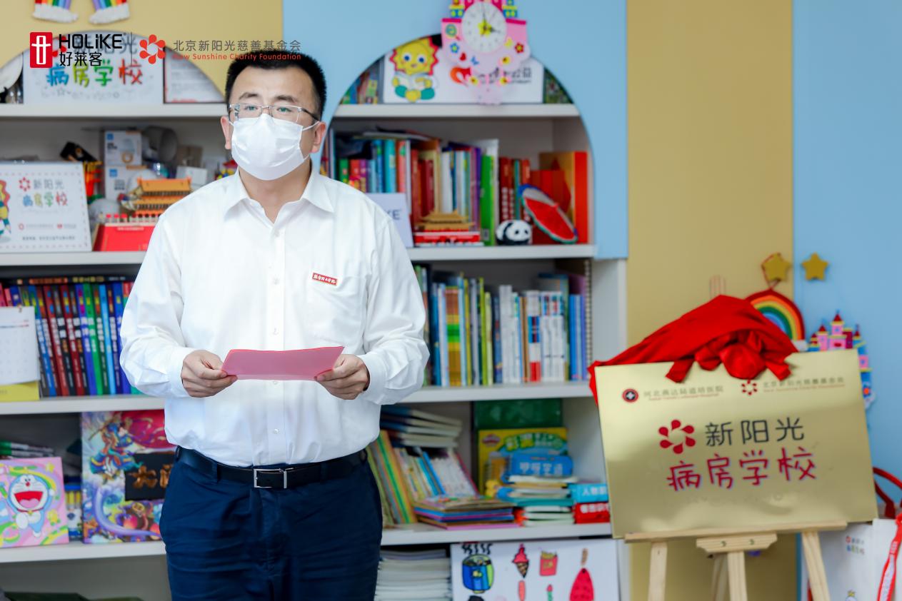 卜月在发言中表示,今年是好莱客与新阳光合作的第十三年,也是携手病房学校的第八年。截至目前,好莱客已在全国打造了30多间病房里的学习空间。在本次山西省儿童医院病房学校的建设中,好莱客严格把控细节,选用环保的原态净醛竹板材料,兼顾美观与实用,致力于为患儿营造健康、舒适的学习环境。他鼓励孩子们勇敢面对困难,并承诺好莱客将持续陪伴,让病房学校成为孩子们温暖的“第二个家”。