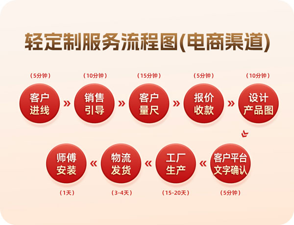 在这一模式下,消费者可在线上平台完成咨询、量尺、设计、下单的全部流程,线下仅需完成安装交付,真正实现全链路线上化、服务轻量化。