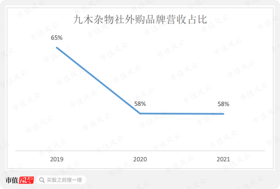 目前九木杂物社的单店营收在逐年增长,其中外购品牌营收占比为58%,超过一半,倒更像是一个买手集合店。2021年8月,公司还花1.86亿收购了挪威书包品牌贝克曼91.4%的股权,为零售大店增加了自主品牌品类。