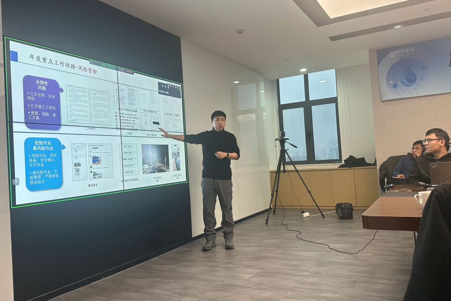 针对2025年安全工作情况,会议从“全员安全履职、风险管控、专项工作、厂站药剂管理、合规性风险”等方面进行了总结复盘,明确了公司运营管理部与安全管理部在2026年更深入的链接、融合。下一步,公司将优化安全条线人员配置,强化一线作业管控,通过层级补位减少现场隐患、降低风险。同时,进一步加强对运营项目一线人员的安全指导与帮扶,提升安全技能、夯实安全意识,形成更加严密的安全监督管理闭环。