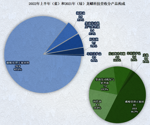 主要是新增了“磷酸铁锂正极材料”这个产品,2021年占到了营收的46.3%,成为第一大产品。2022年上半年,“磷酸铁锂正极材料”产品占比更是达到了85%,仅这个产品半年的营收就超过了2021年全年所有产品的营收,不可谓增长不快。