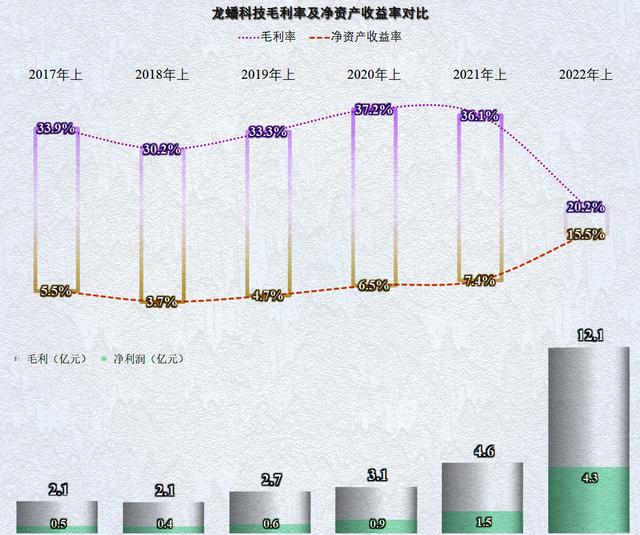 但是,新产品的毛利率是没有老产品高的,2022年上半年,毛利率同比下降达15.9个百分点。但是净资产收益率却明显提升了一倍多,这主要就是营收增长带来的规模效应。