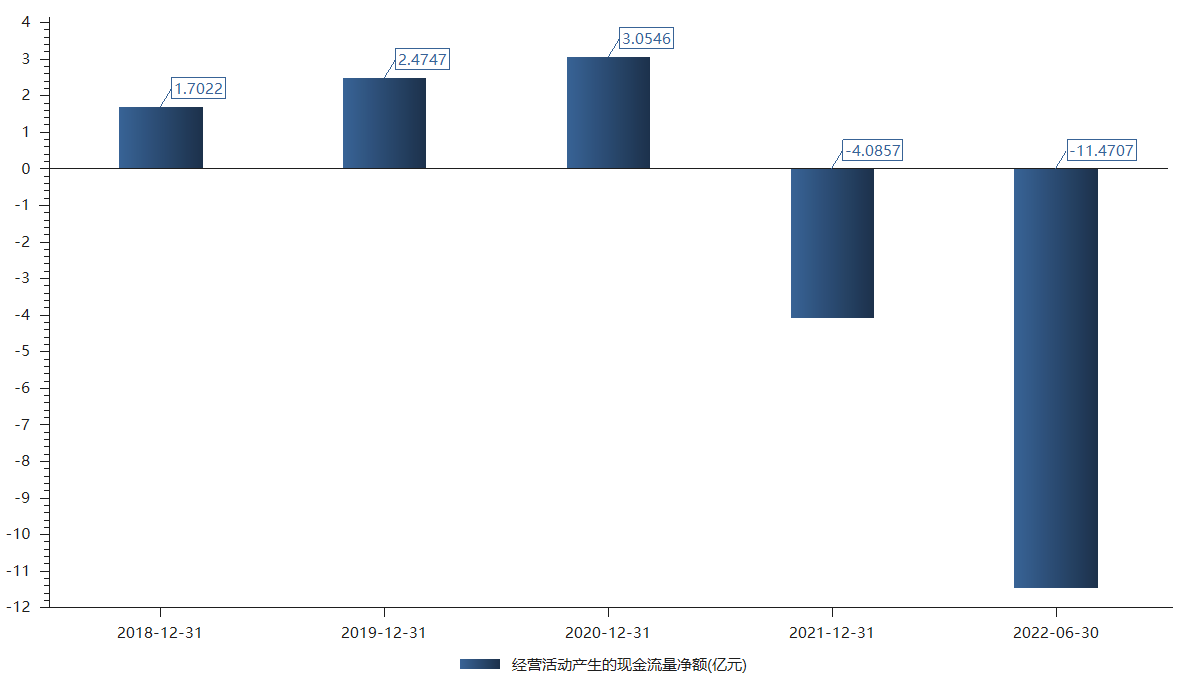归母净利为4.33亿元,但其中又有多少真金白银?其经营性净现金流为-11.47亿元。主营业务并未沉淀下现金,超4亿元的净利成了账面上躺着的数字。
