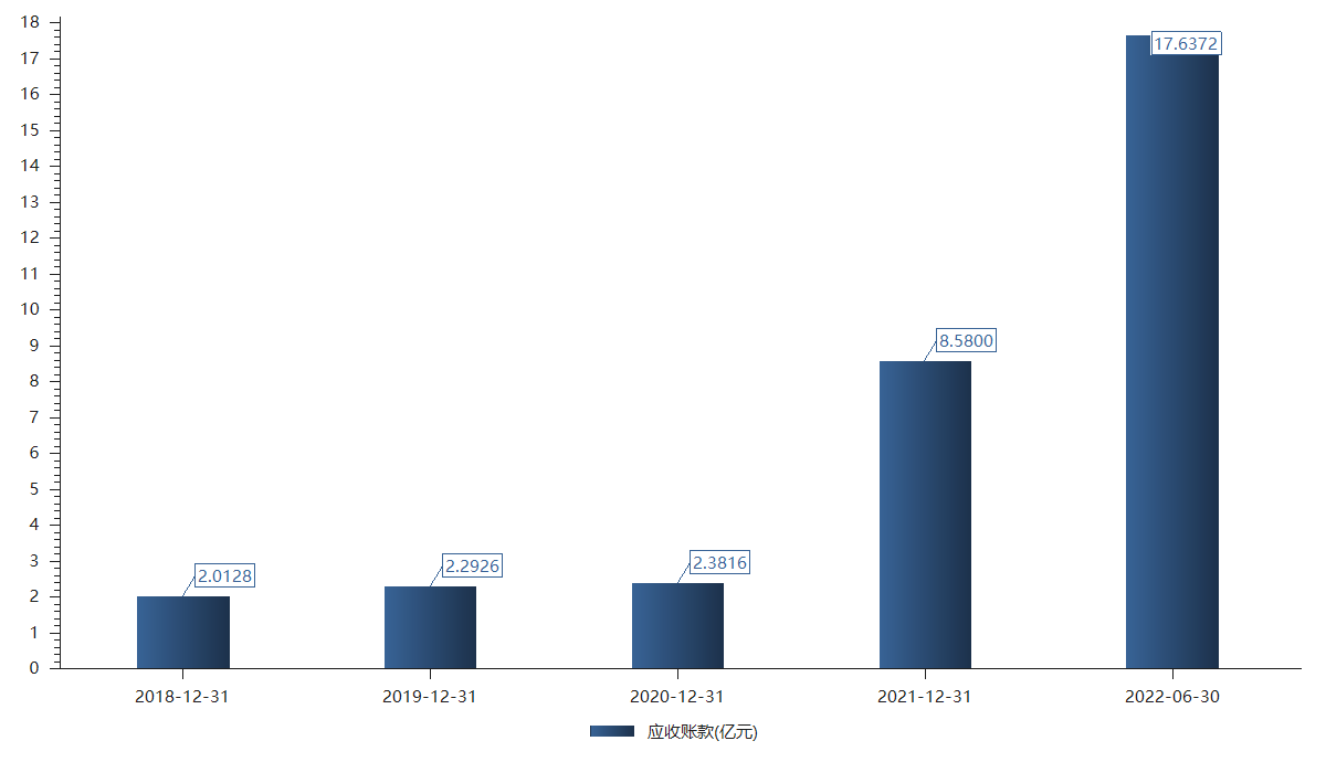 尽管押注锂电赛道,给公司业绩打了一剂强心针。公司2022年上半年营收超60亿元,但应收账款就达17.64亿元,占营收的比重近30%。