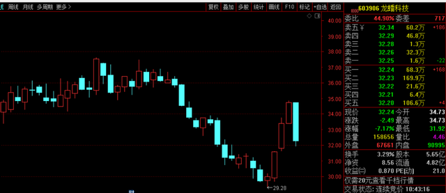 9月8日,龙蟠科技早盘低开低走,盘中大跌8%,截止发稿时,龙蟠科技重挫逾7%,股价报于32.26元,总市值为182亿。