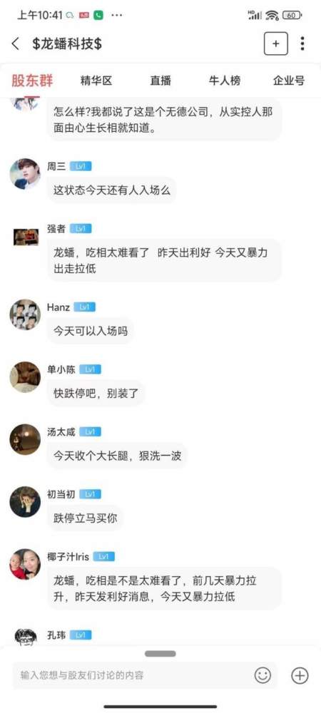 在尺度龙蟠科技股东群,投资者议论纷纷,有投资者表示,兴奋得一夜没睡,结果走成这个样子,“吃相太难看了,刚公布利好就暴力拉低出走。”因此,也有投资者表示,龙蟠科技利好公告前几天大涨,今天属于利好兑现,资金借机出逃吧。