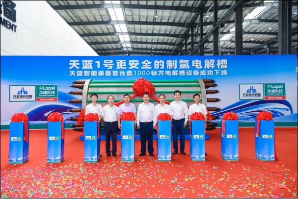 “三个月时间,我们的工厂就完成了建设;然后我们又用了三个月,实现了1000标方首台套设备的正式下线,创造了氢能行业罕见的‘龙蟠速度’‘溧水速度’。”龙蟠科技董事长石俊峰在开场致辞中表示,“在电解槽项目建设过程中,溧水区委、区政府各级领导高效务实、谋篇布局,为龙蟠氢能源整体项目进程提供了强劲动力,未来,我们将为更多的绿氢项目提供综合性能更加安全可靠的系列电解槽产品,为中国乃至全球绿氢产业的快速发展和普及,贡献一份龙蟠力量!”