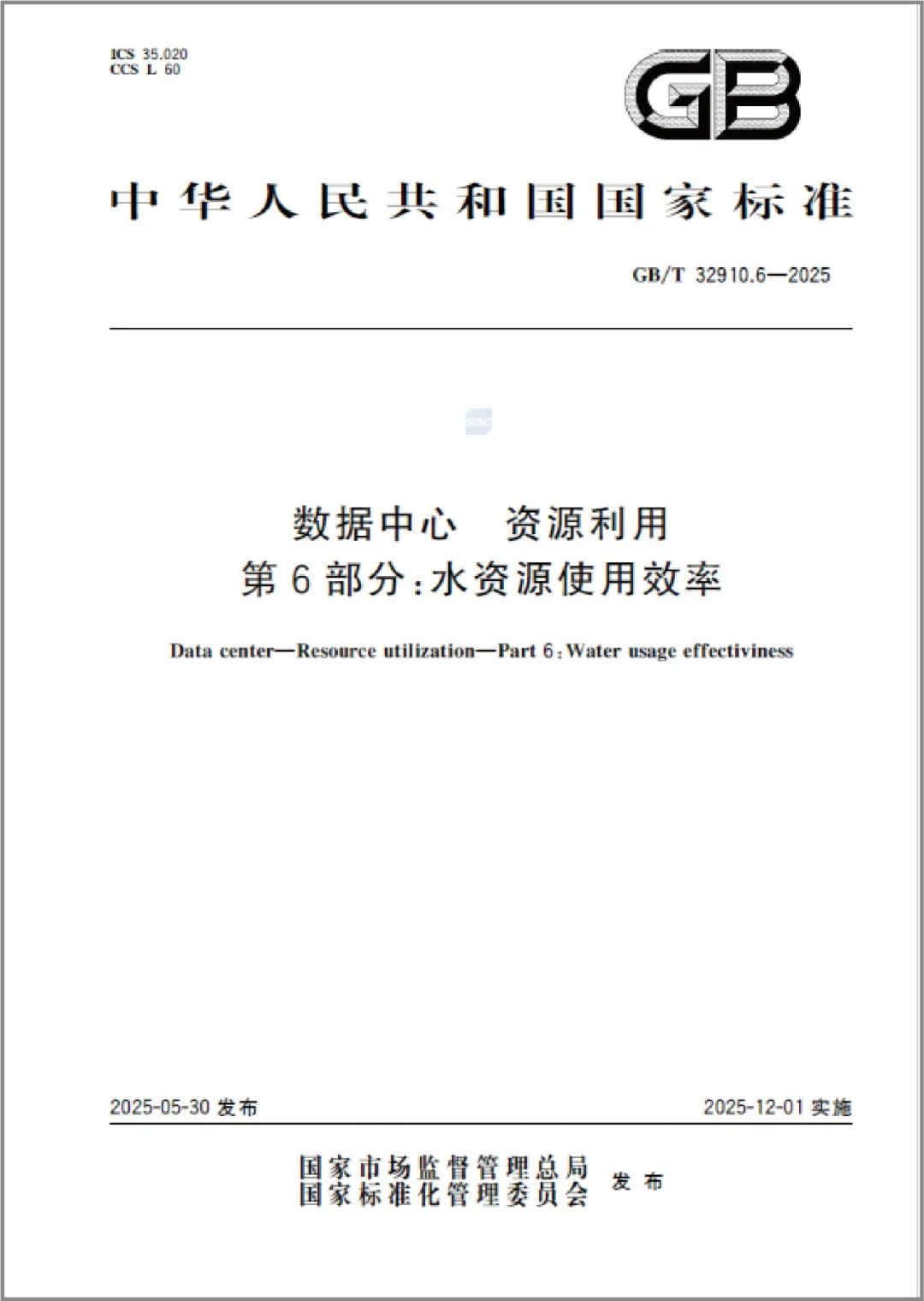 ● GB/T 32910.6-2025《数据中心资源利用第6部分:水资源使用效率》: