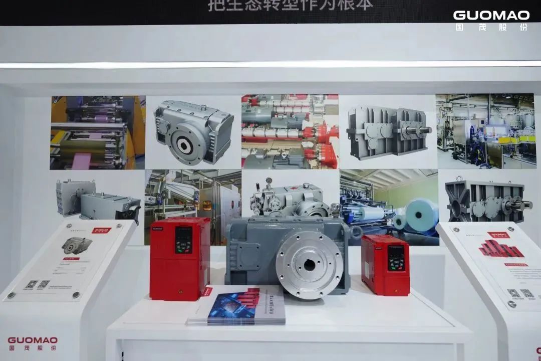 此次展会共有展品5台,包含国茂股份明星产品——橡塑专用减速机:ZLYJ系列、JE高承载系列、SZL系列、TEM系列,以及GM800系列变频器。