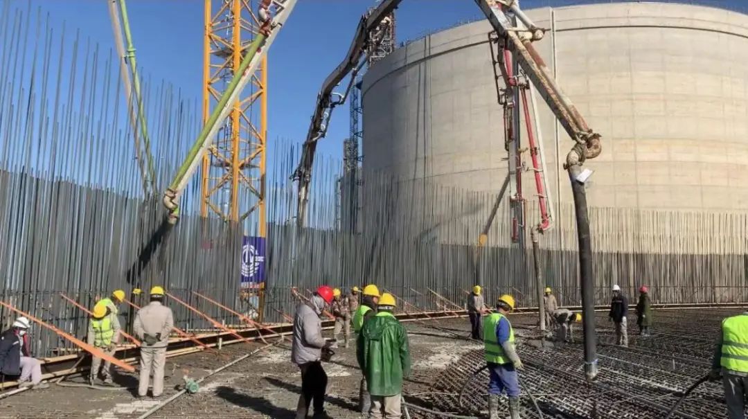本次扩建工程同时建设6座世界单罐容量最大的27万立方LNG储罐,为世界同期建设体量最大的储罐基地。储罐外罐墙体内径94.2m,墙体厚0.9至1.2m,高47m,墙体高度为全球LNG储罐之最。