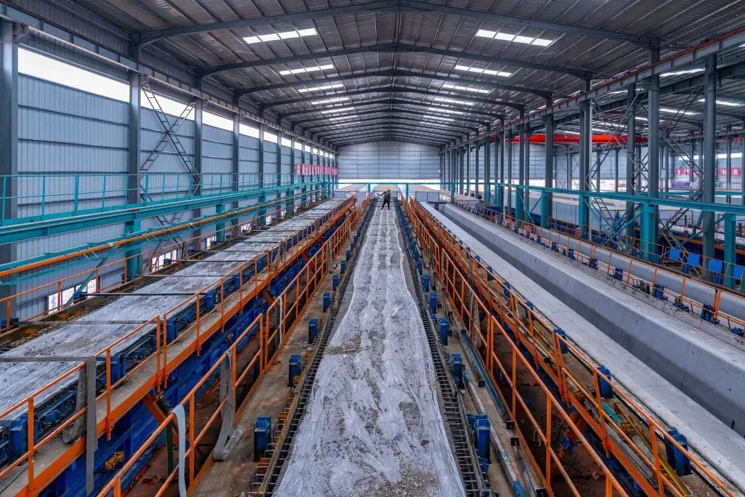 智慧梁厂T梁制造主要是在T梁一体化智能建造厂房,该区域由钢筋就位区、T梁预制区、张拉压浆区、箱室养护区、成梁存放区五大功能区组成,一片梁就是在一道又一道严格把关的程序中诞生的。