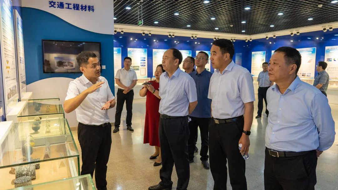 在高性能土木工程材料国家重点实验室,来访领导考察了实验室的硬件条件,详细了解了实验室在绿色低碳新材料开发、人才队伍建构、科研项目承担以及作为科研平台与高校对接和为地方经济服务的情况。王守斌一行对国家重点实验室在服务重大战略、聚焦市场需求、坚持产学研融合、积极发挥科研和人才优势为地方经济服务等方面取得的成绩给予了充分肯定。