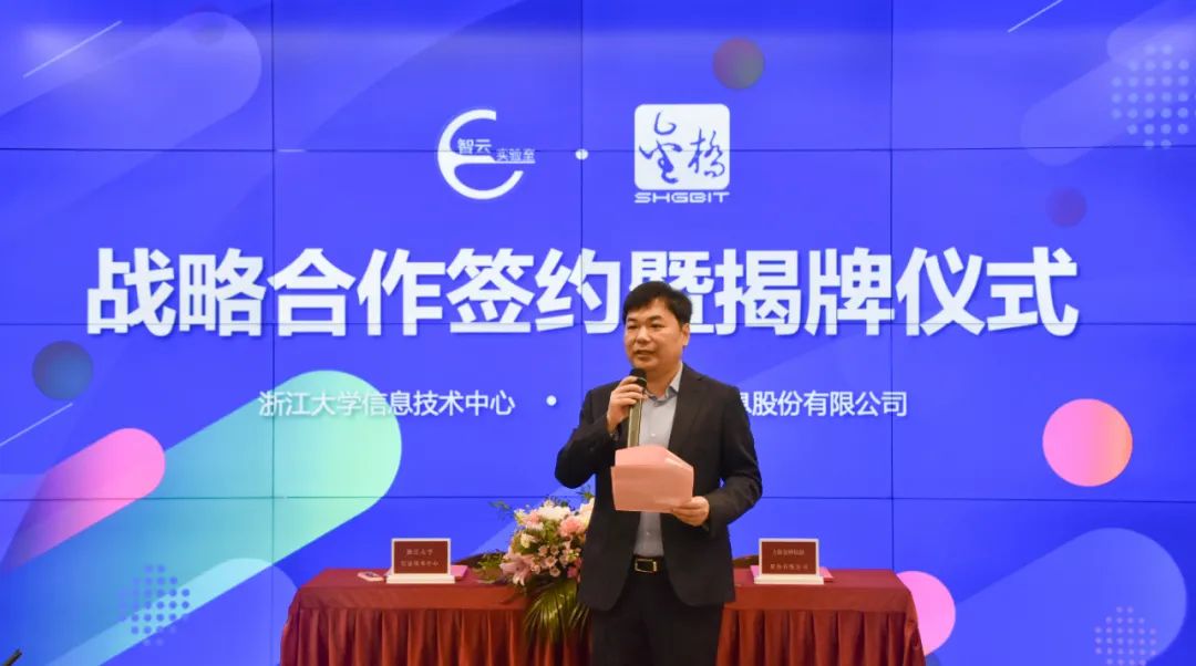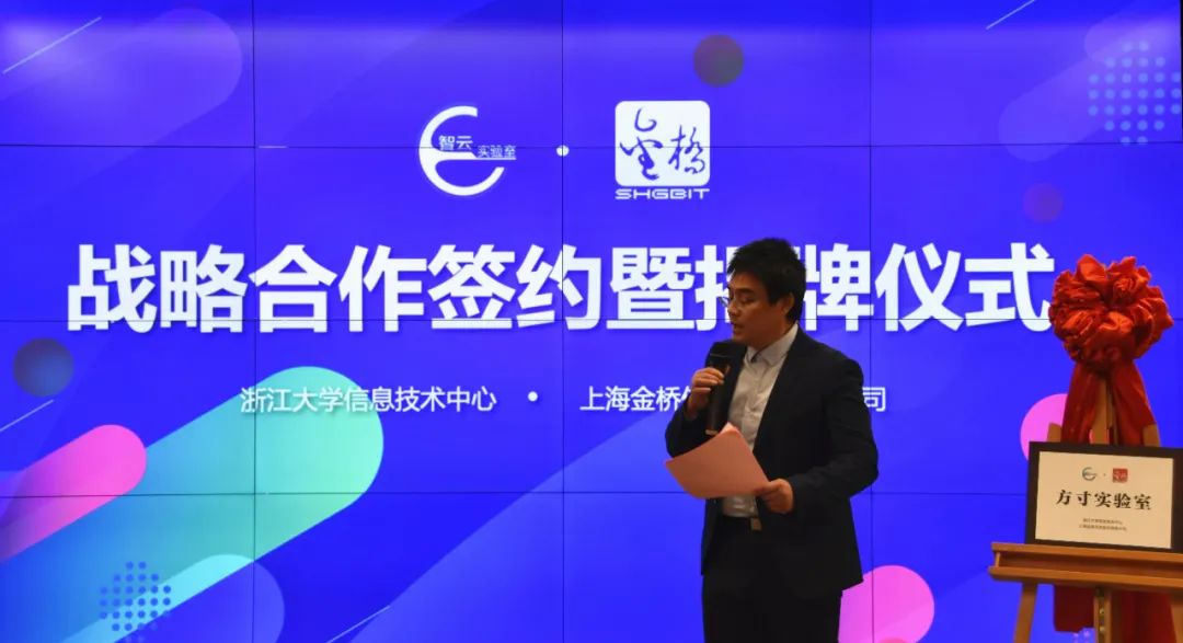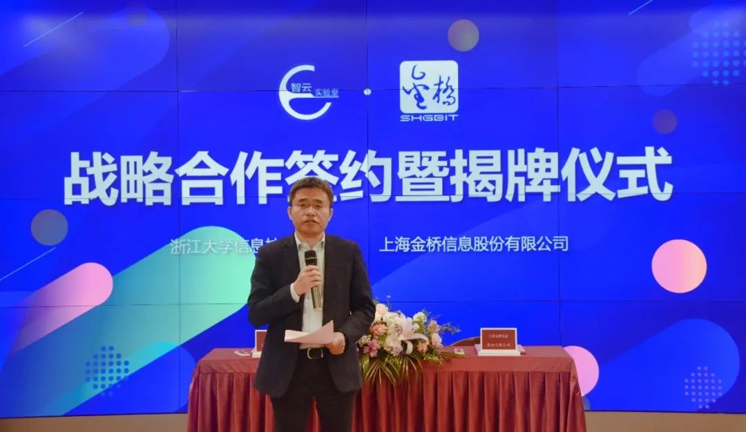 3月9日,浙江大学信息技术中心智云实验室与上海金桥信息股份有限公司在浙江大学紫金港校区举行“方寸实验室”签约仪式,进一步加强深度战略合作,共同践行智慧教学空间“创新、协同、绿色、开放、共享”的新发展理念。签约仪式由智云联合研究中心副主任云霞主持,浙江大学信息技术中心主任陈文智、总工程师张紫徽、副主任方伟杰,金桥信息常务副总经理王琨、副总经理杨家骅、杭州分公司经理蒋力宽及智云生态合作伙伴共同出席签约仪式。陈文智主任和王琨副总经理代表双方致辞,表达了对未来合作的期待和信心。浙江大学本科生院教务处教学资源办公室主任魏志渊老师,中国教育装备行业协会教育装备研究院副院长施建国也共同见证了本次签约活动。