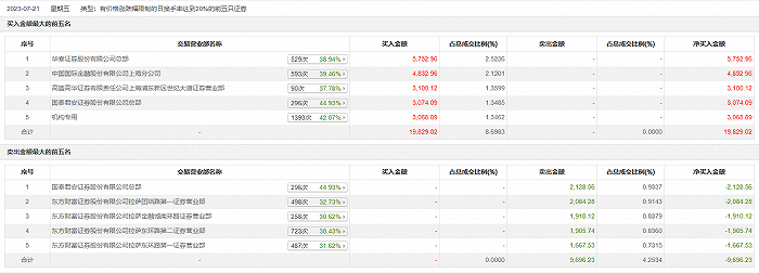 具体来看,机构合计净买入3068.89万元。此外,华泰证券总部、中国国际金融上海分公司分别买入5752.96万元、4832.96万元;国泰君安证券总部、东方财富证券拉萨团结路第一证券营业部分别卖出2128.56万元、2084.28万元。