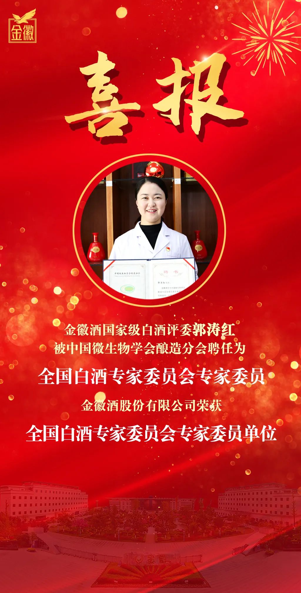 日前,金徽酒股份有限公司国家级白酒评委、国家一级品酒师郭涛红被中国微生物学会酿造分会聘任为“全国白酒专家委员会专家委员”。金徽酒股份有限公司荣获中国微生物学会酿造分会——全国白酒专家委员会专家委员单位。