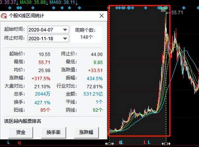 复星系的入主,引发金徽酒股价暴涨。2020年4月至11月,金徽酒从10元左右最高涨至55元,涨幅高达4倍。