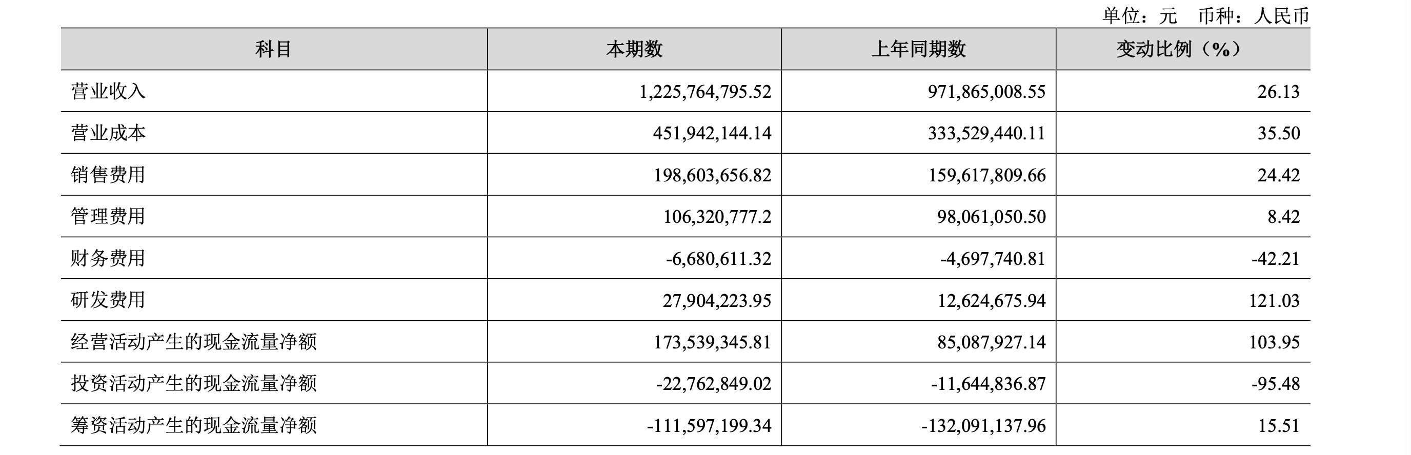 根据半年报业绩显示,金徽酒上半年实现营业收入12.26亿元,同比提升26.13%;归属于上市公司股东的净利润为2.12亿元,同比提升13.06%;经营活动产生的现金流量净额为1.74亿元,同比提升103.95%。