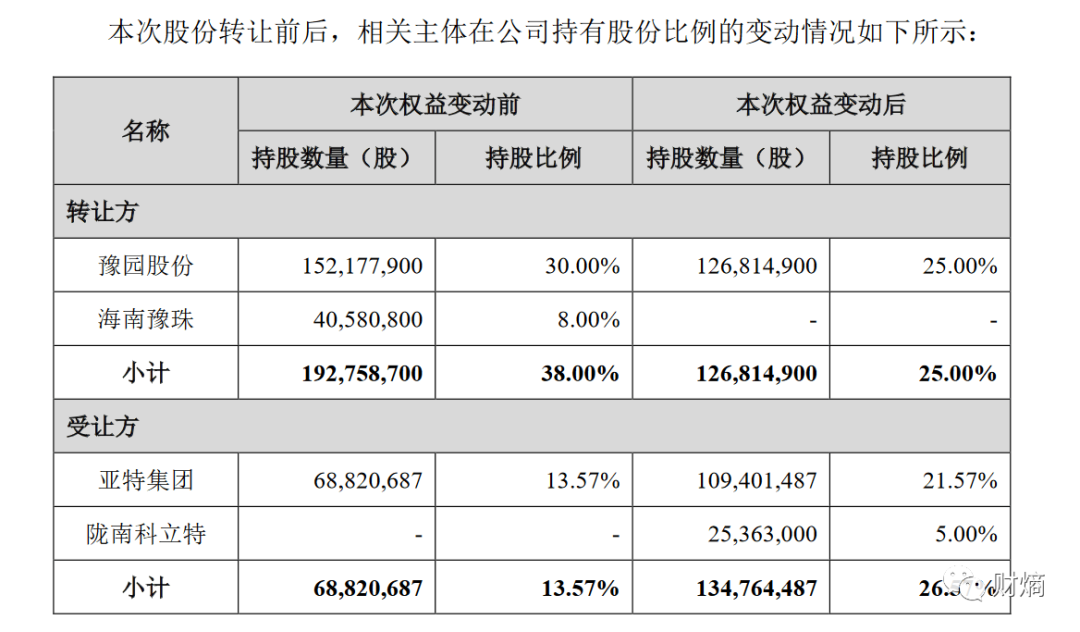 在上述遭减持的资产里,金徽酒的讨论度颇为热烈。9月2日,金徽酒发布股权变更公告,控股股东豫园股份(600655.SH)及其一致行动人海南豫珠,拟将其合计持有的6594.38万股金徽酒股份(占金徽酒总股本的13%),转让给亚特集团及其一致行动人陇南科立特,交易均价为29.38元/股,总作价约19.37亿元。