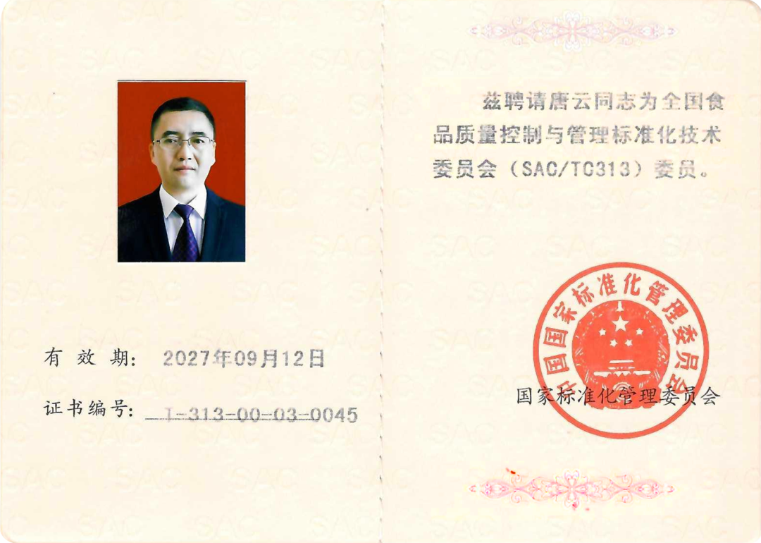 11月,陇南市行业领军人才,金徽酒副总经理、高级工程师唐云被中国国家标准化管理委员会聘任为全国食品质量控制与管理标准化技术委员会(SAC/TC313)委员。
