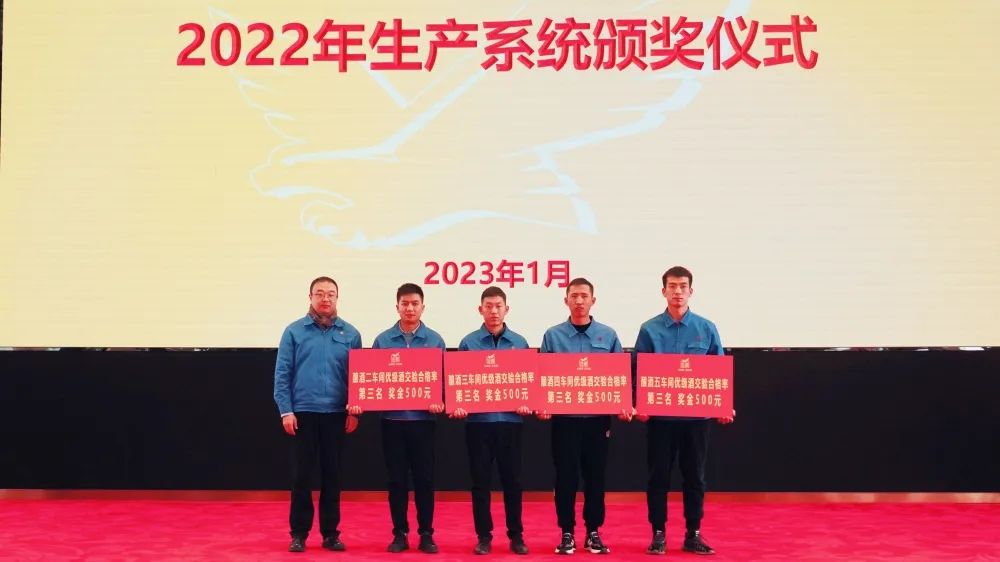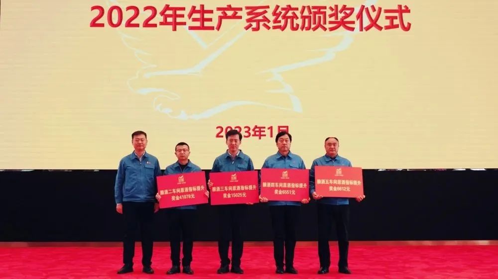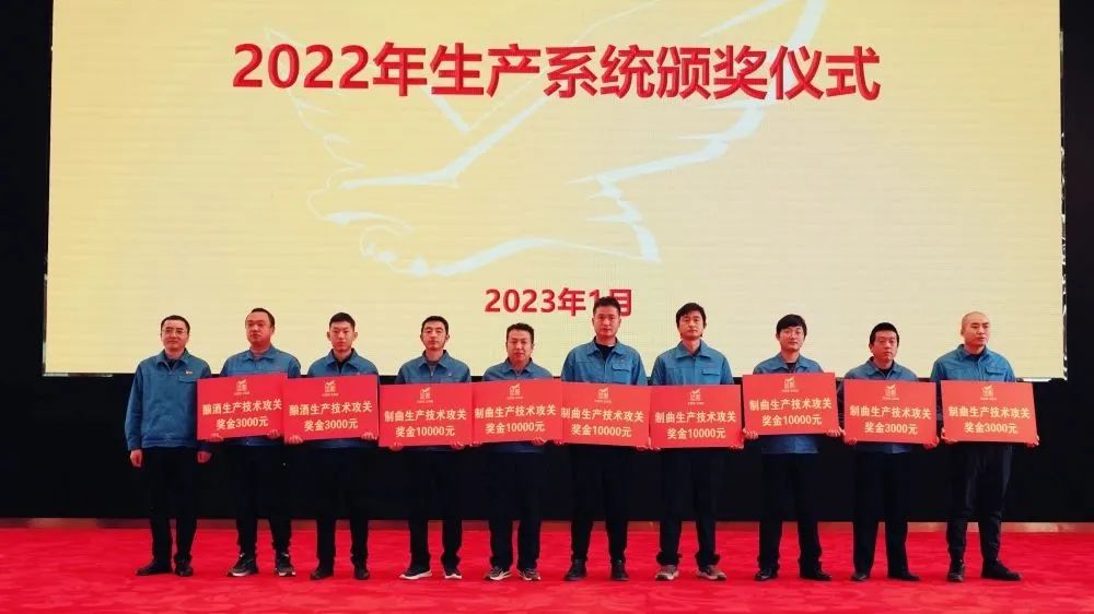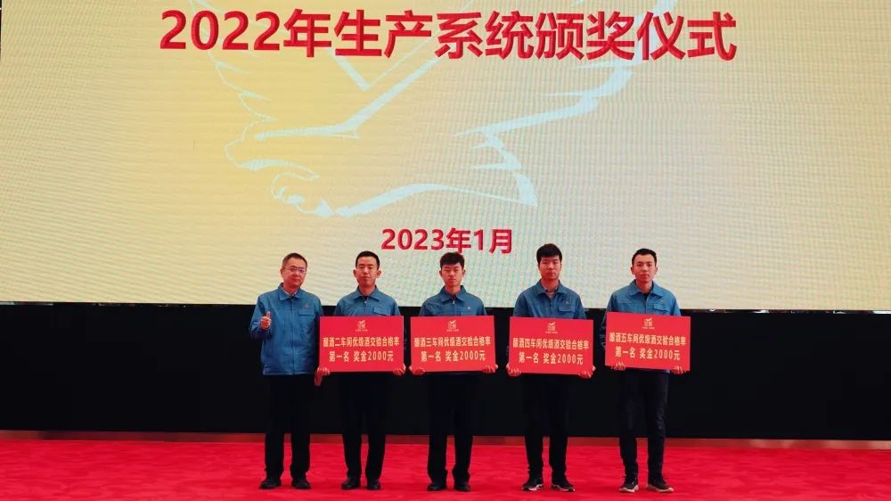 会议全面总结了2022年度生产工作取得的成绩,客观分析了存在的问题及当前面临的挑战和机遇,全面部署了2023年度生产工作。会上,酿酒二车间、酿酒三车间和制曲车间负责人分享了车间管理、技术攻关和生产试验的优秀经验做法。会议举行了隆重颁奖仪式,对各生产车间在2022年下半年生产技能竞赛、原酒质量提升、生产技术攻关课题等进行了表彰奖励。