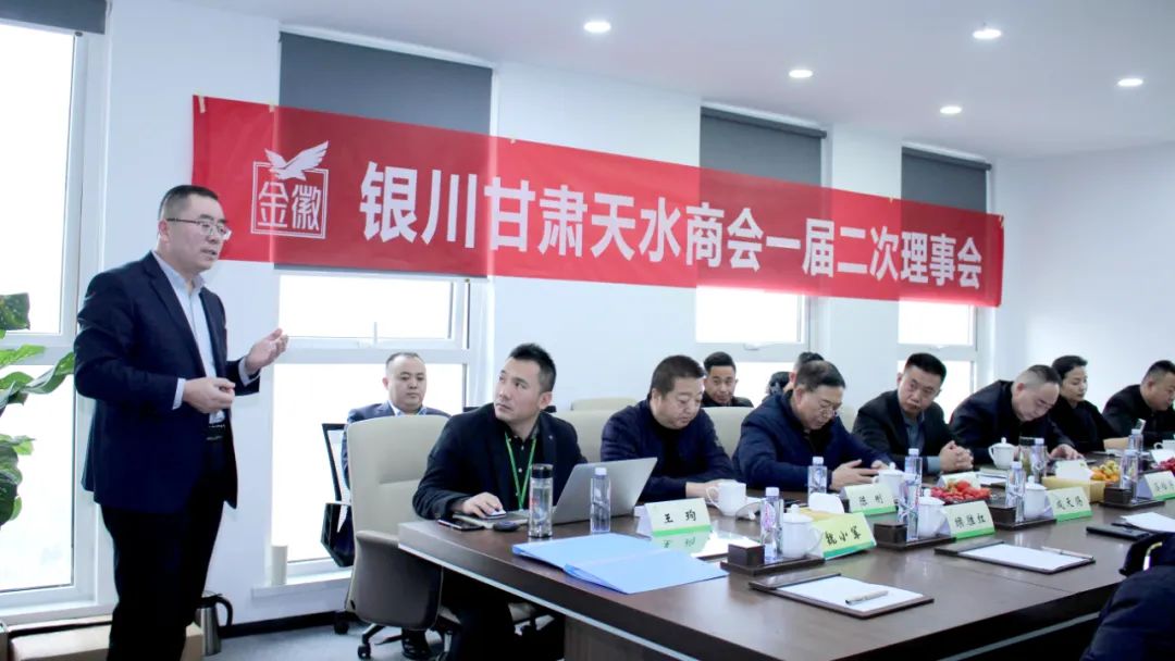金徽酒银川销售有限公司总经理徐文海向天水商会的到来表示热烈欢迎,他表示,金徽酒作为家乡企业,盼望与商会不断加强联系、增进友谊、树立合作典范,共同讲好家乡故事、传承陇商精神、传递正能量。