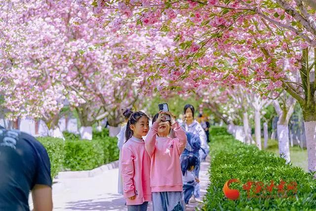 人间四月天,一场浪漫的赏樱盛宴正在陇南金徽酒厂开启,来自各地的游客畅游在樱花大道,踏青游玩,于花海中邂逅美好春色。