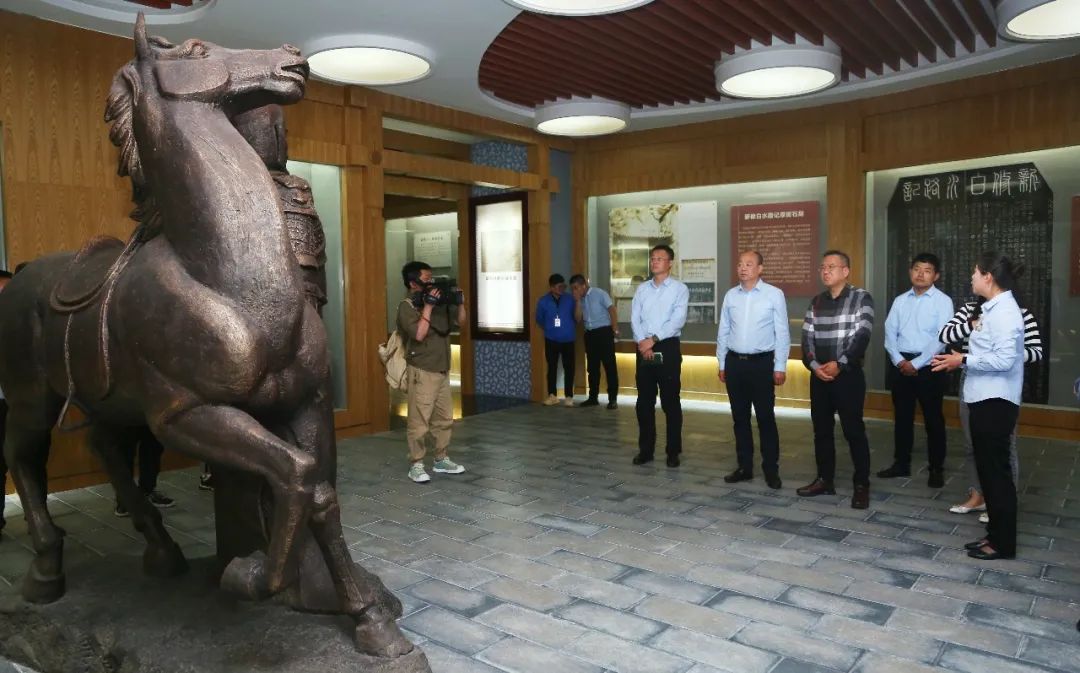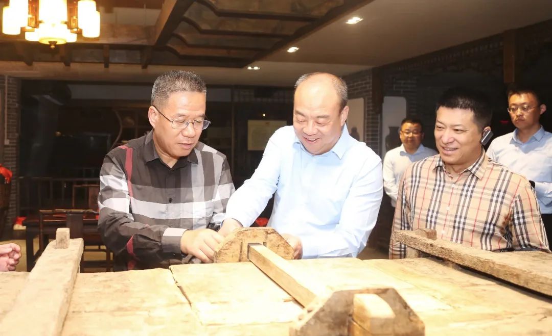 观史料、阅记载、看图片、品陈酿,在金徽酒文化展览馆,马光远一行分别参观了展陈李白、吴玠全身雕塑像;反映金徽酒酿造、买卖、饮酒、运输的金徽酒盛世图;仿制碑《新修白水路记》摩崖石刻;清民时期运输徽酒的收据、税票、号旗;永盛源作坊掌柜外出乘坐的马车等,全面领略了金徽酒的历史文化,对金徽酒的传承赞不绝口。