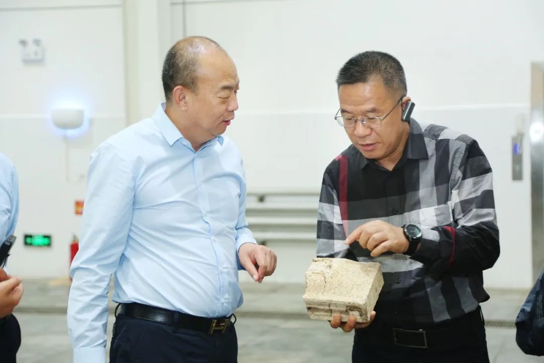 第二站,马光远一行来到了金徽酒工业遗址旁西北最大的制曲车间。在这里,他拿起酒曲砖“望闻问切”,在七层酵房实地考察时感慨地说:“这真是一个神奇的车间,酒曲在自然发酵中所施放的热量(中心温度约60摄氏度),且制曲和采取的时间仅仅有6个月(每年4月至10月)时间,这就是大自然的神奇和古技艺的传承。”