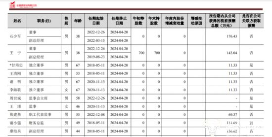 与此同时,公司副总王宁税前薪酬从2021年的71.83万元上涨到2022年的143.04万元;副总石少军税前报酬由2021年的76.51万元,涨至2022年的176.43元;副总经理廖结兵税前薪酬从2021年的76.02万元涨到了2022年的136.62万元。